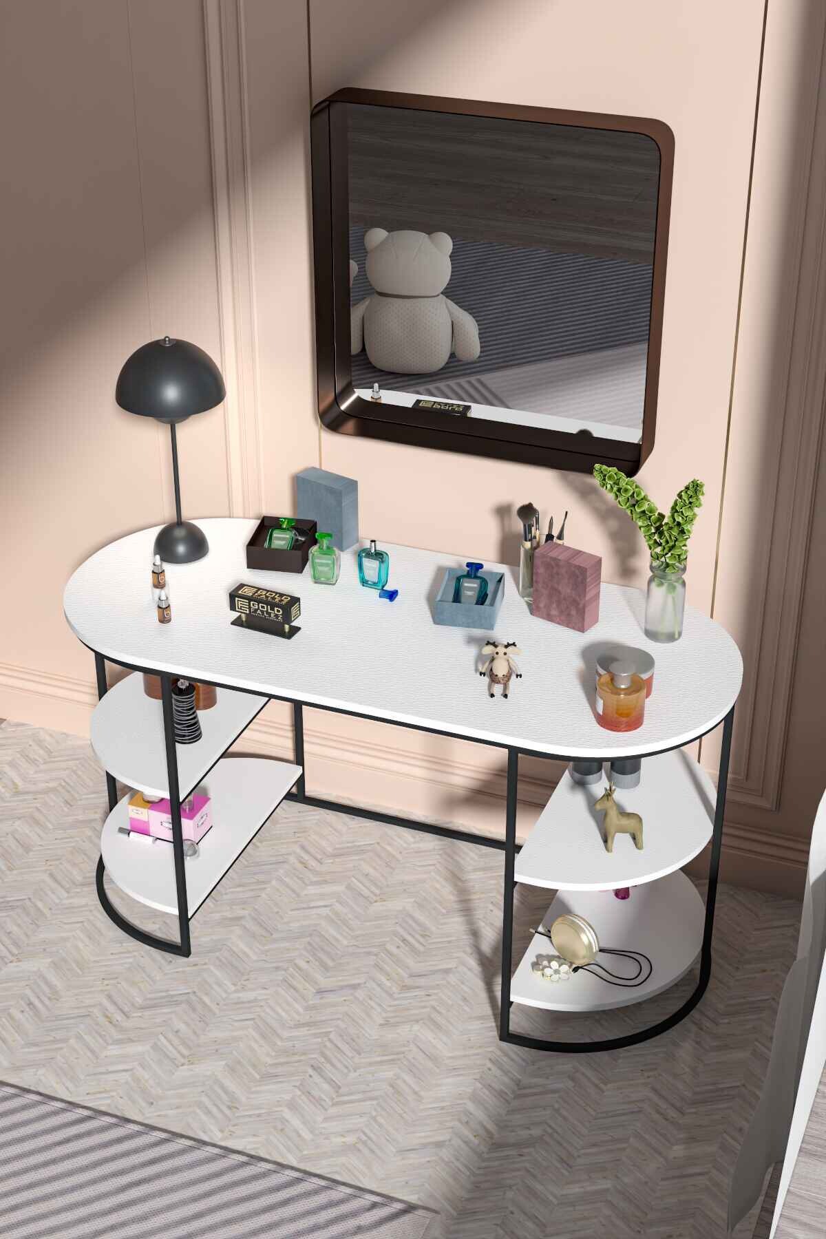 Minimal ve zarif tasarımı sayesinde her tarz dekorasyona uyum sağlar. Hem çalışırken verim alın, hem güzelleşirken keyif alın – çok amaçlı metal ayaklı masanızla her şey mümkün!