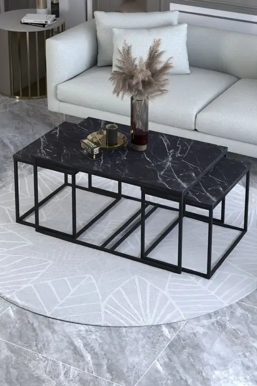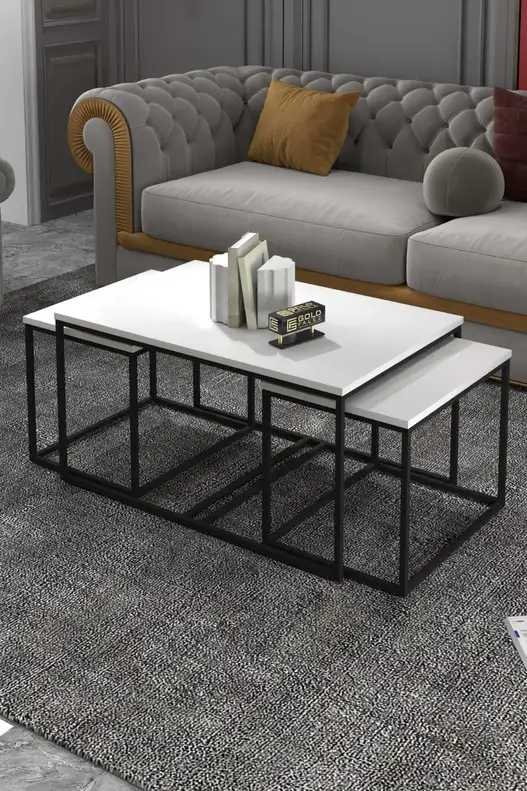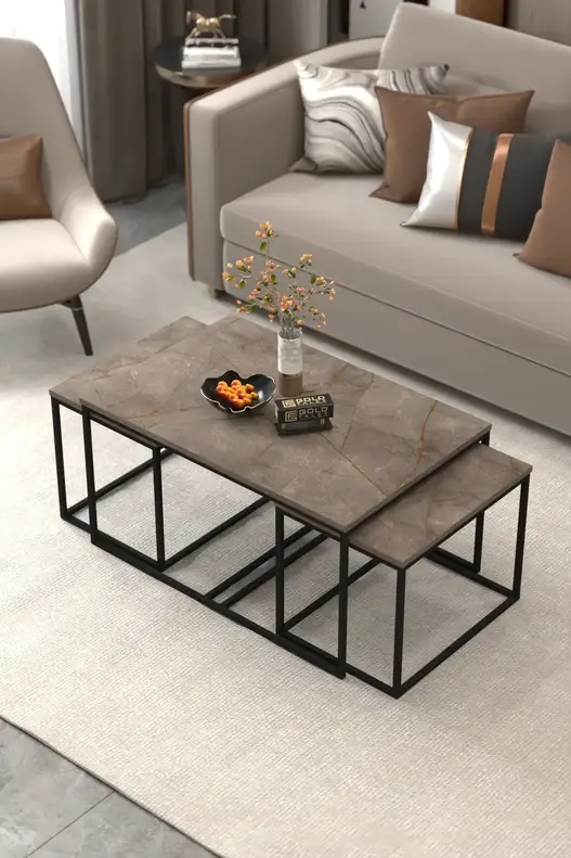- Drawing attention with its modern design, this coffee table set reshapes the atmosphere of your home or office.