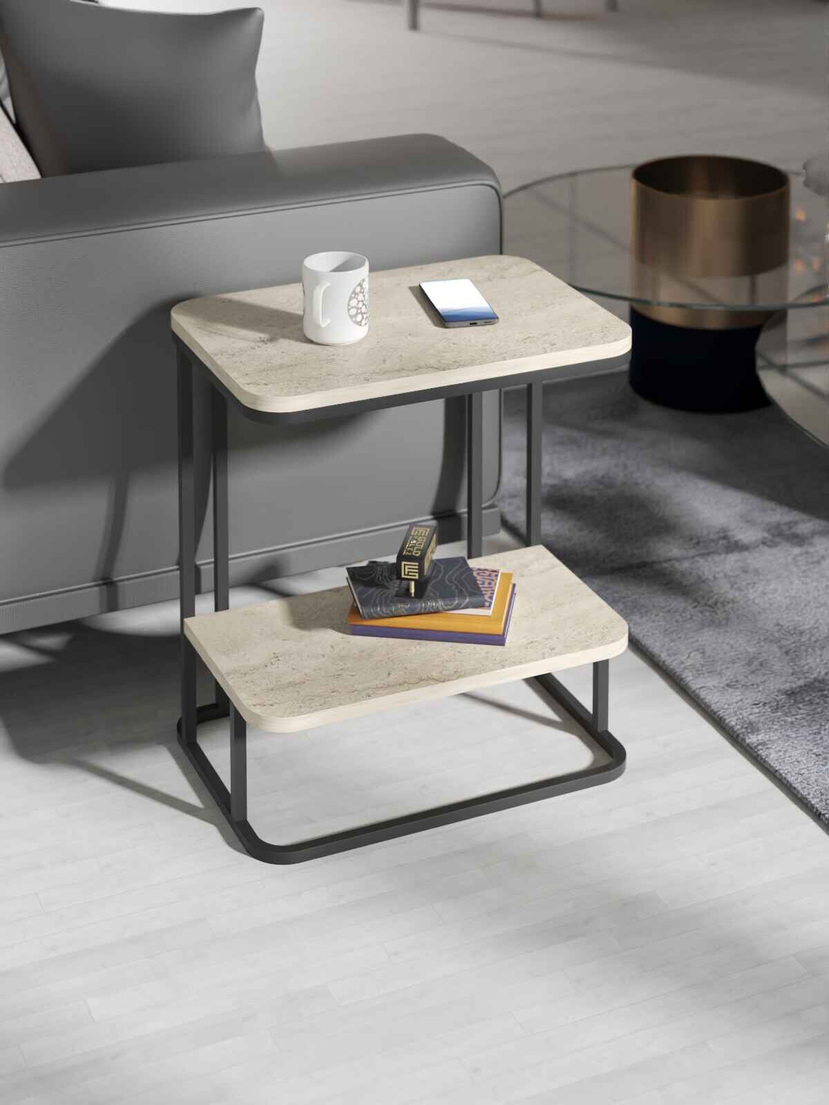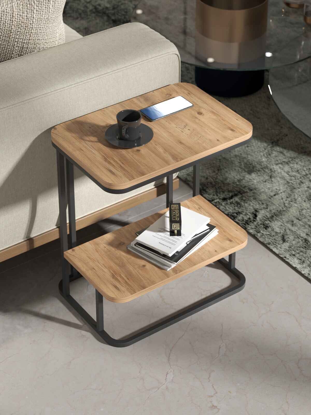 Modern Side Table - Particleboard & Metal Design (50x35x55 cm)