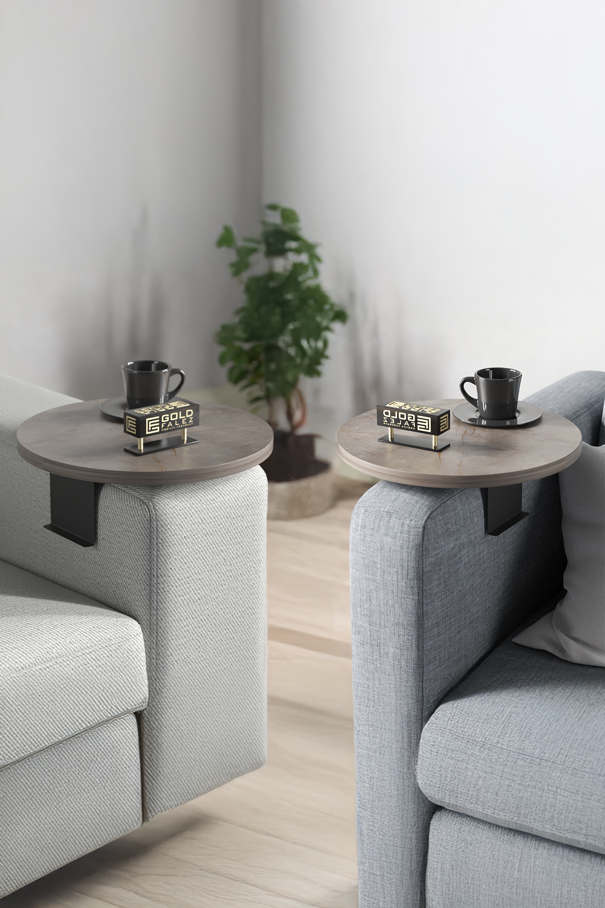 Dekoratif İkili (2 Adet) Yan Sehpa Yuvarlak