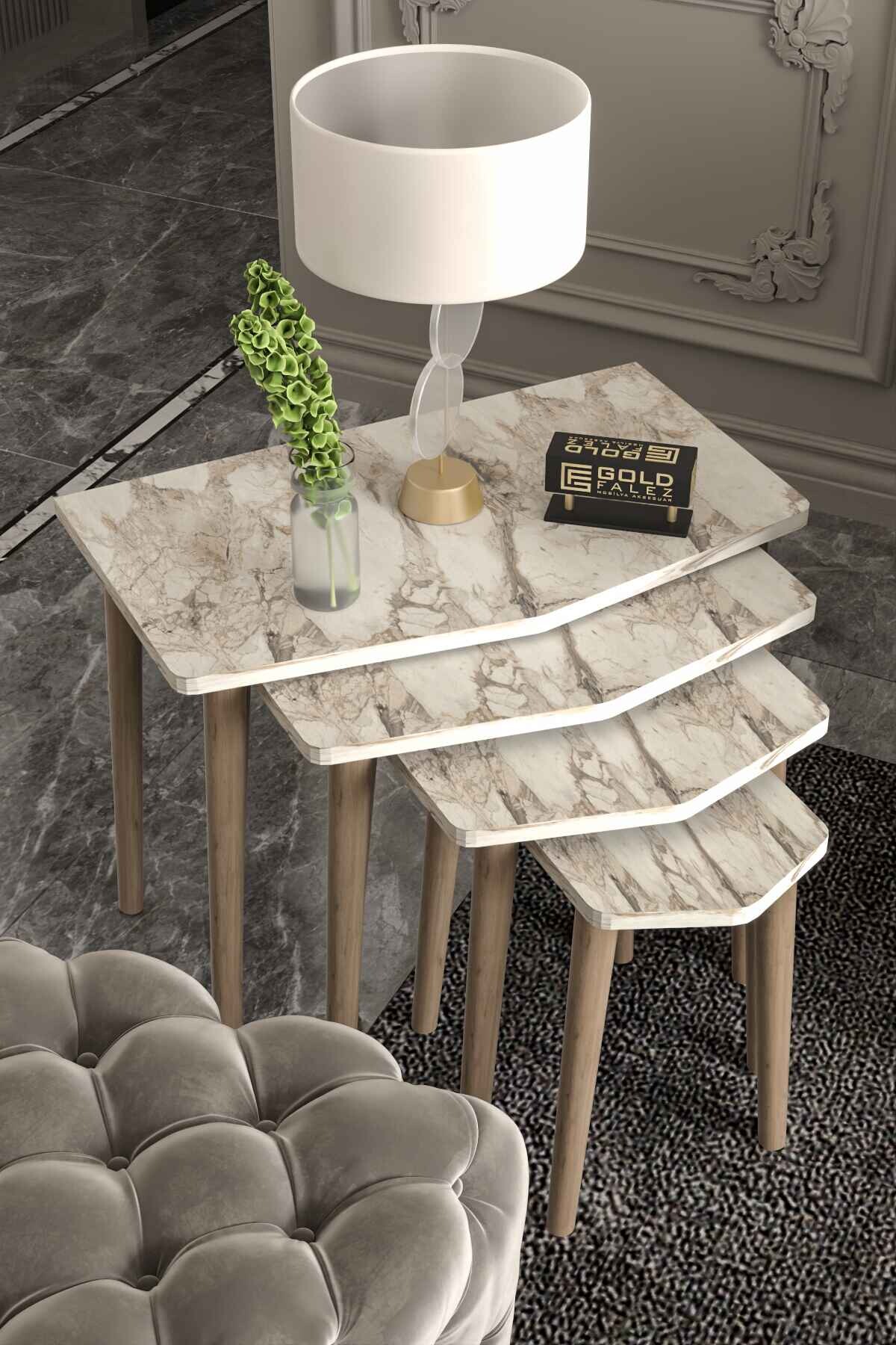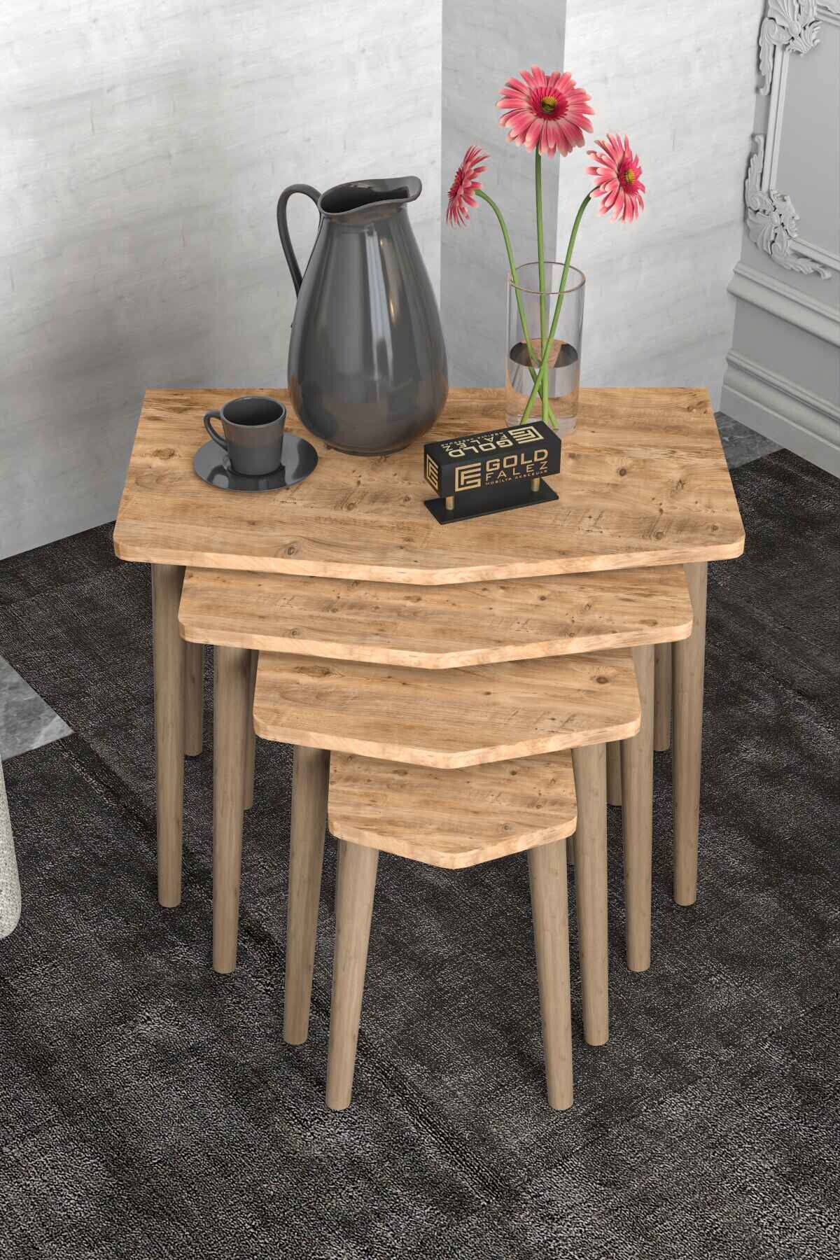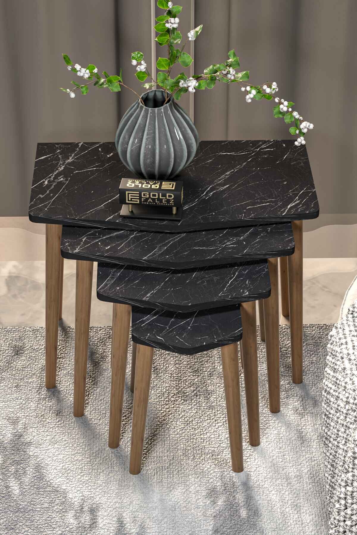 This coffee table set offers both a practical and decorative solution with its easy portability and space-saving design. You can use it for your tea and coffee presentations, displaying your magazines and books or decorating it with decorative objects.