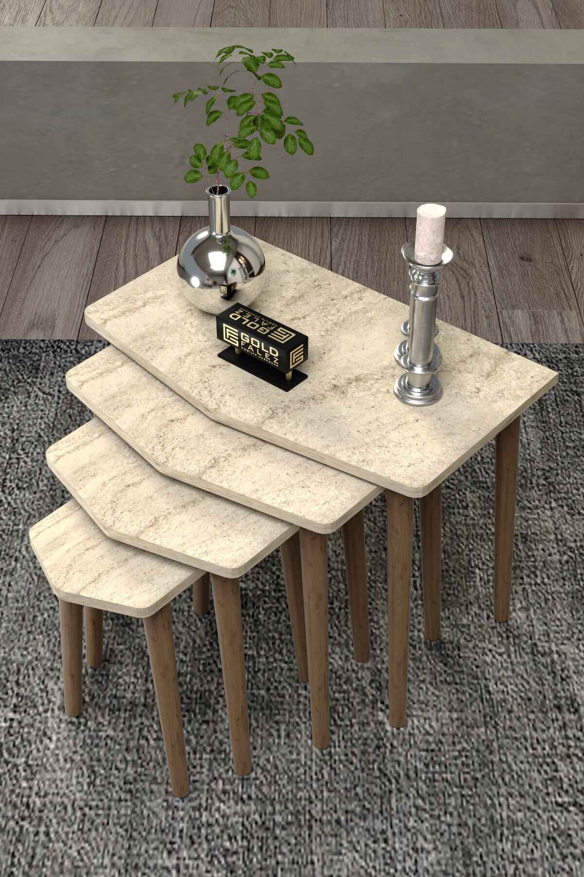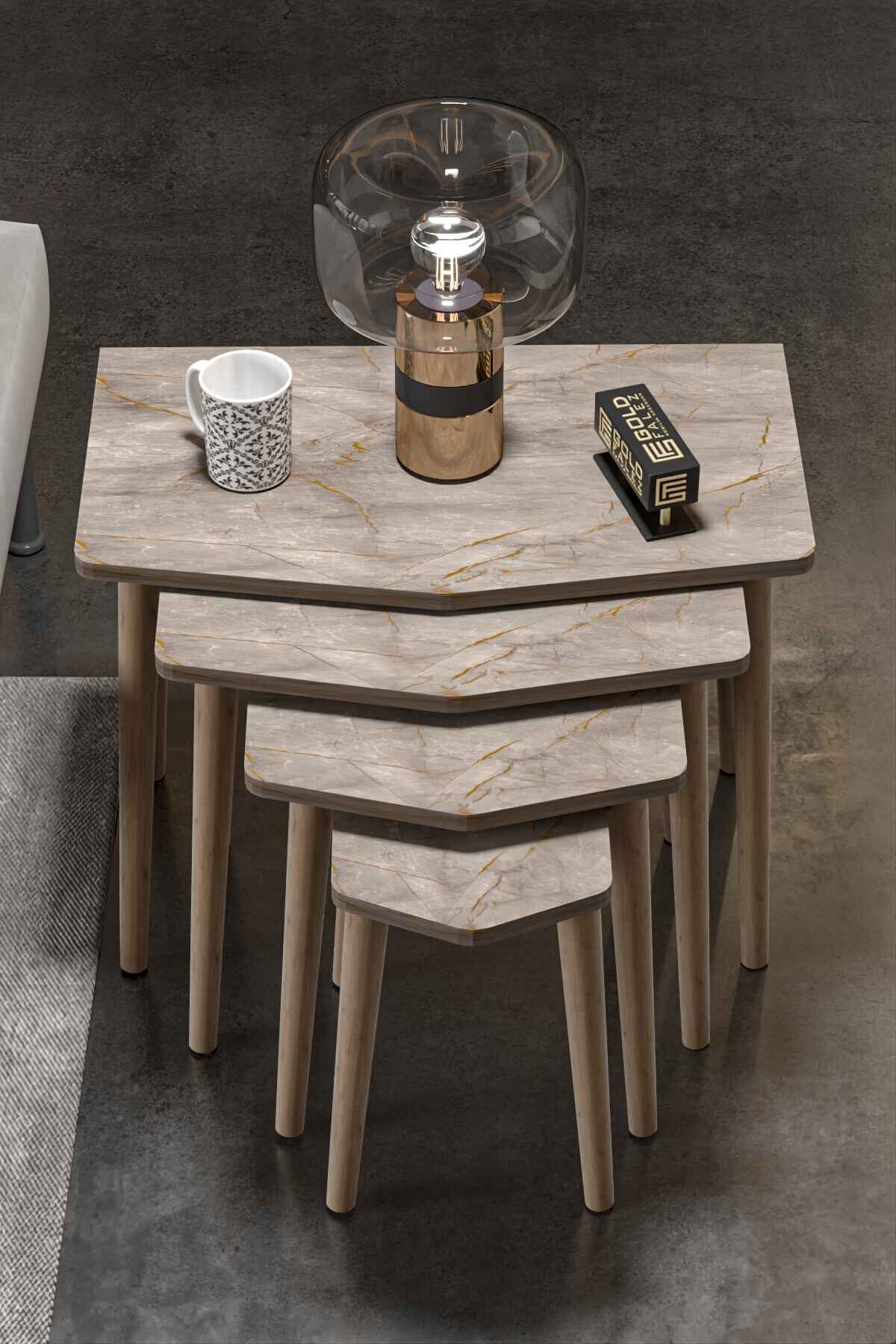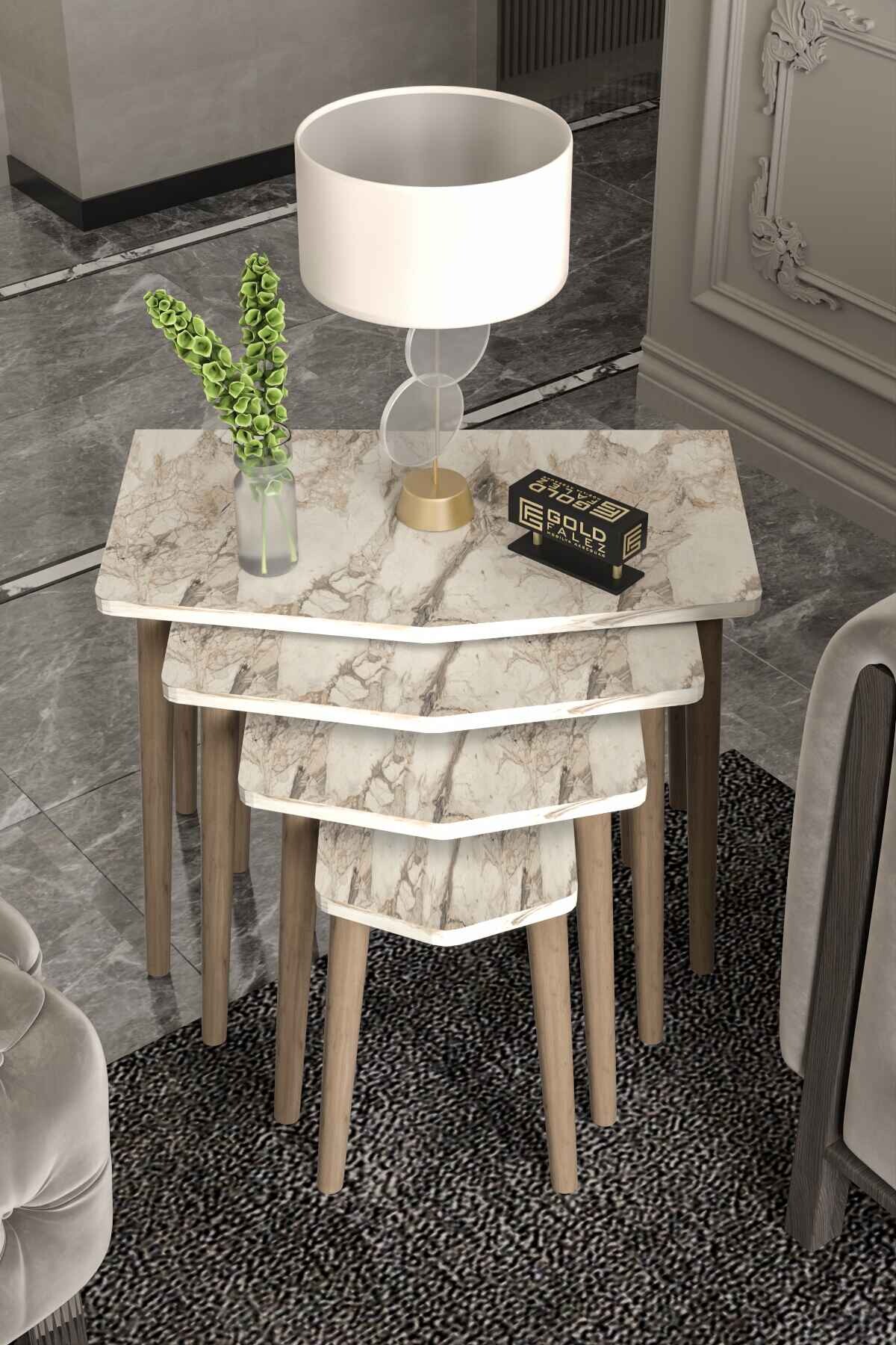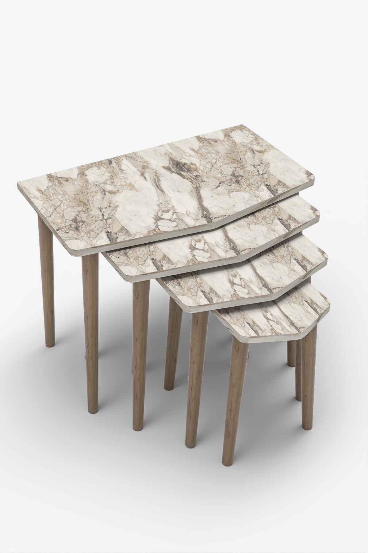This coffee table set offers both a practical and decorative solution with its easy portability and space-saving design. You can use it for your tea and coffee presentations, displaying your magazines and books or decorating it with decorative objects.